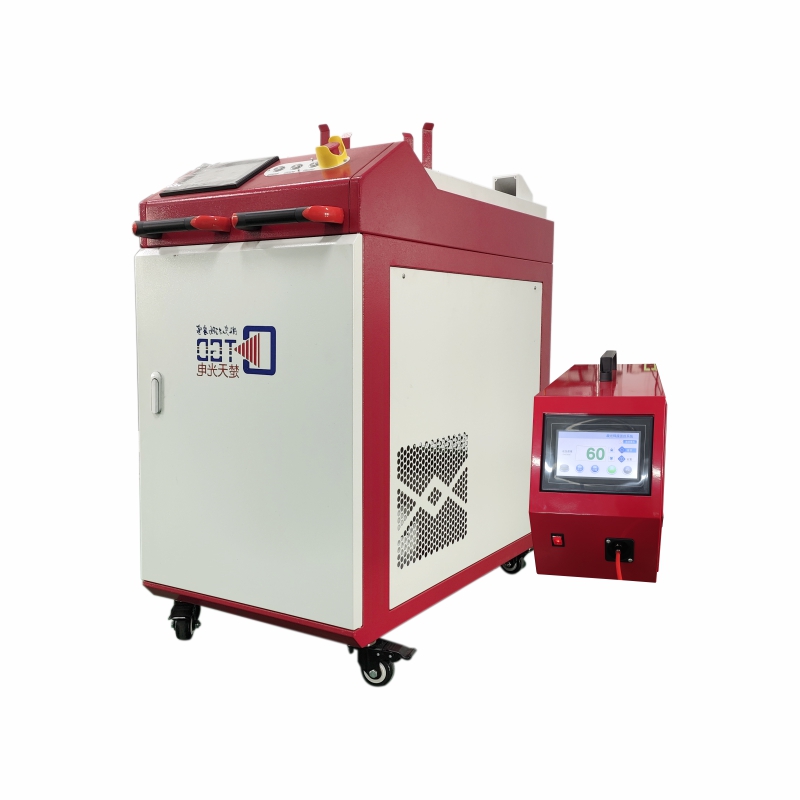 手持式焊接機(jī)采用高功率光纖激光器做為激光發(fā)射源。焊接機(jī)主要組成部分有:激光器(含光纖)、激光焊接頭、控制器、冷水機(jī)等。運(yùn)用手持激光焊接頭進(jìn)行運(yùn)動(dòng),同時(shí)配置雙溫雙控冷水機(jī),低溫水為激光器降溫使用,高溫水為光纖及焊接頭降溫使用。